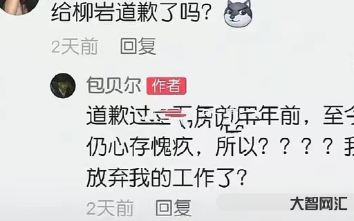 包贝尔此前曾回复一位网友的质问,他写道,“道歉过,五年前四年前,至今仍心存愧疚,所以????我放弃我的工作了?”